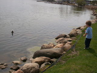 He sat there and watched the duck for a few minutes until they both lost interest and went their separate ways. I could sit and watch him all day, as he soaks up the world around him. It amazes me how much curiosity such a little person can have! Even though I don't want him to grow up (maybe just outgrow some behaviors), I can't wait to see what he will grow up to be...whatever he does, I know he will be amazing!
